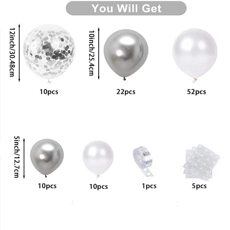 110pcs, White Silvery Balloon Garland Set 10in Birthday Party Wedding Ceremony Decoration Supplies, Party Decor Balloons