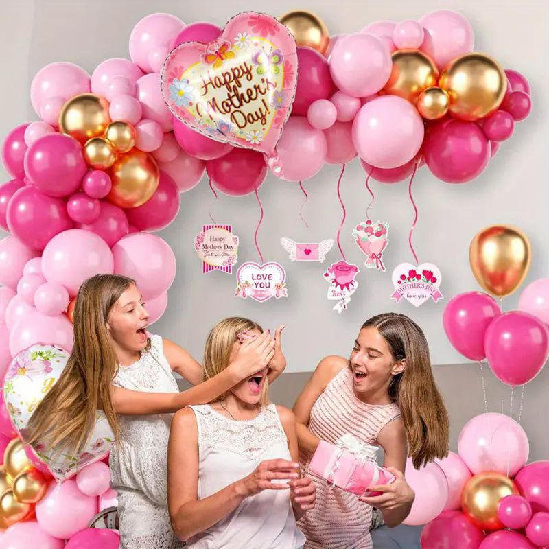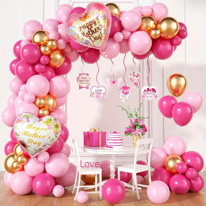 124pcs Mother's Day Balloons Garland Arch Kit Pink Rose Red Latex Love Heart Balloon for Mother's Day Party Decoration Supplies